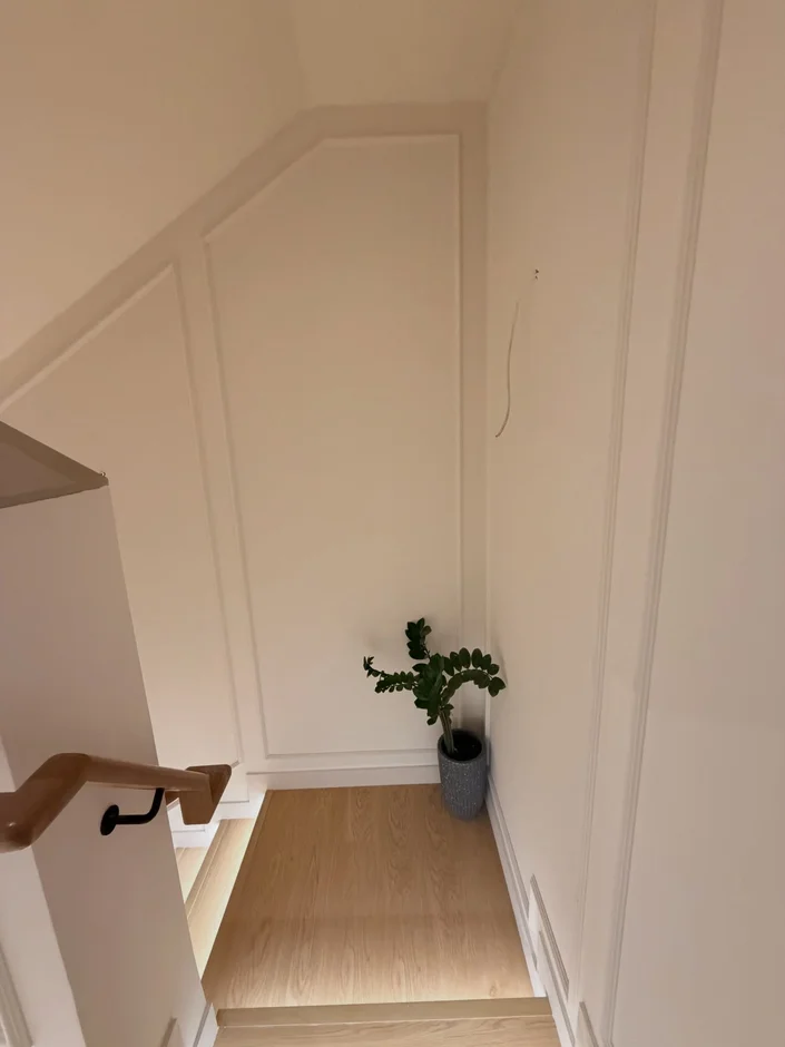 Elegant Staircase Renovation with Modern Lighting & Architectural Wall Detailing