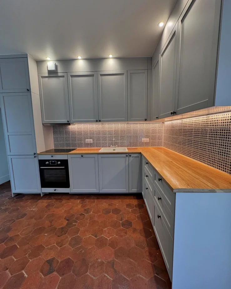 Classic Light Kitchen Renovation with Terracotta Flooring