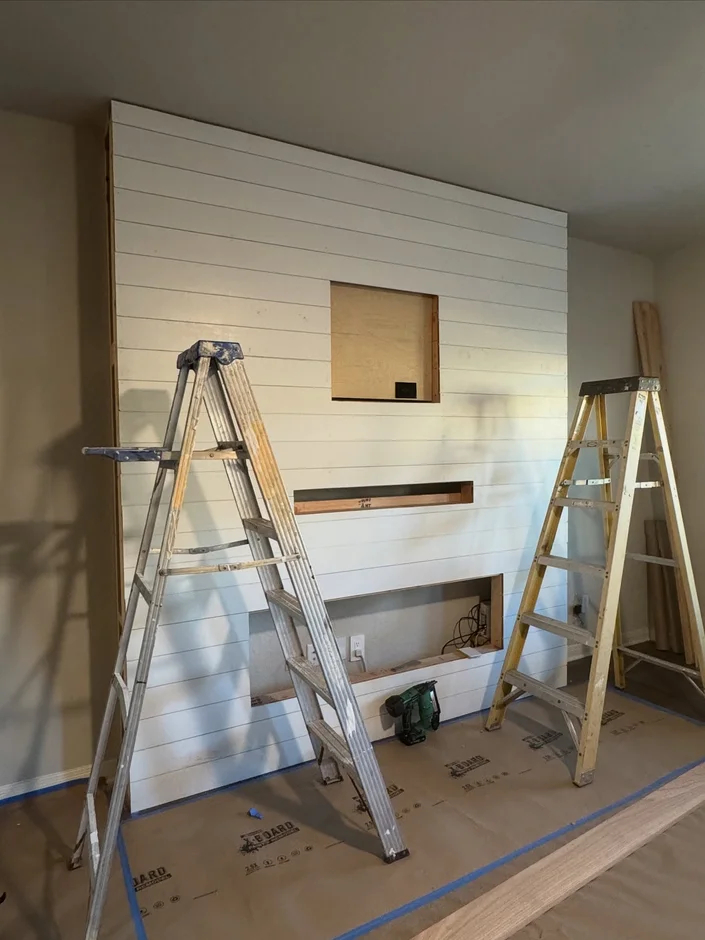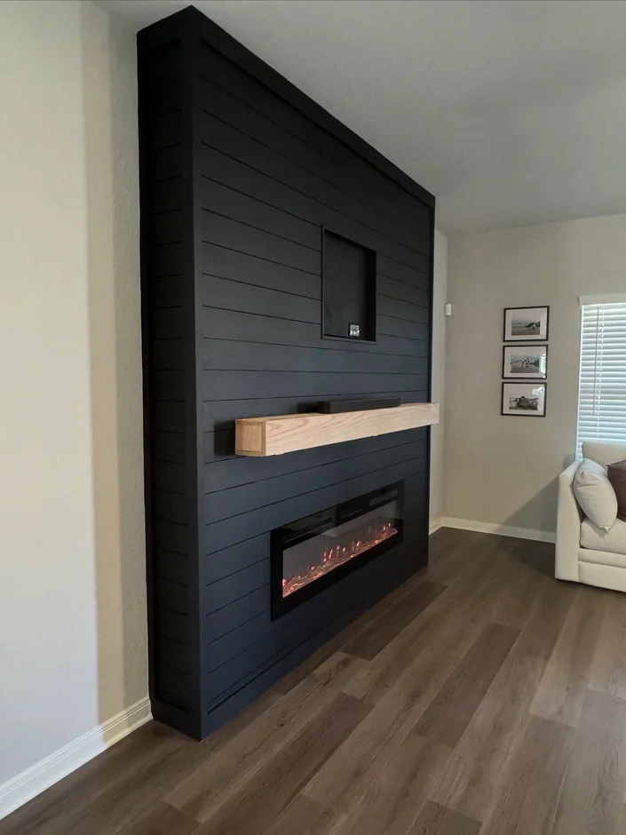 Modern Feature Wall With Built-In Fireplace & TV Niche